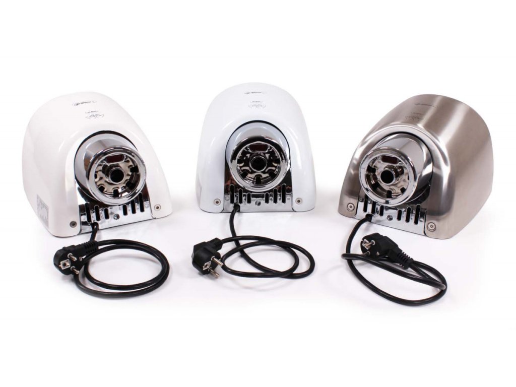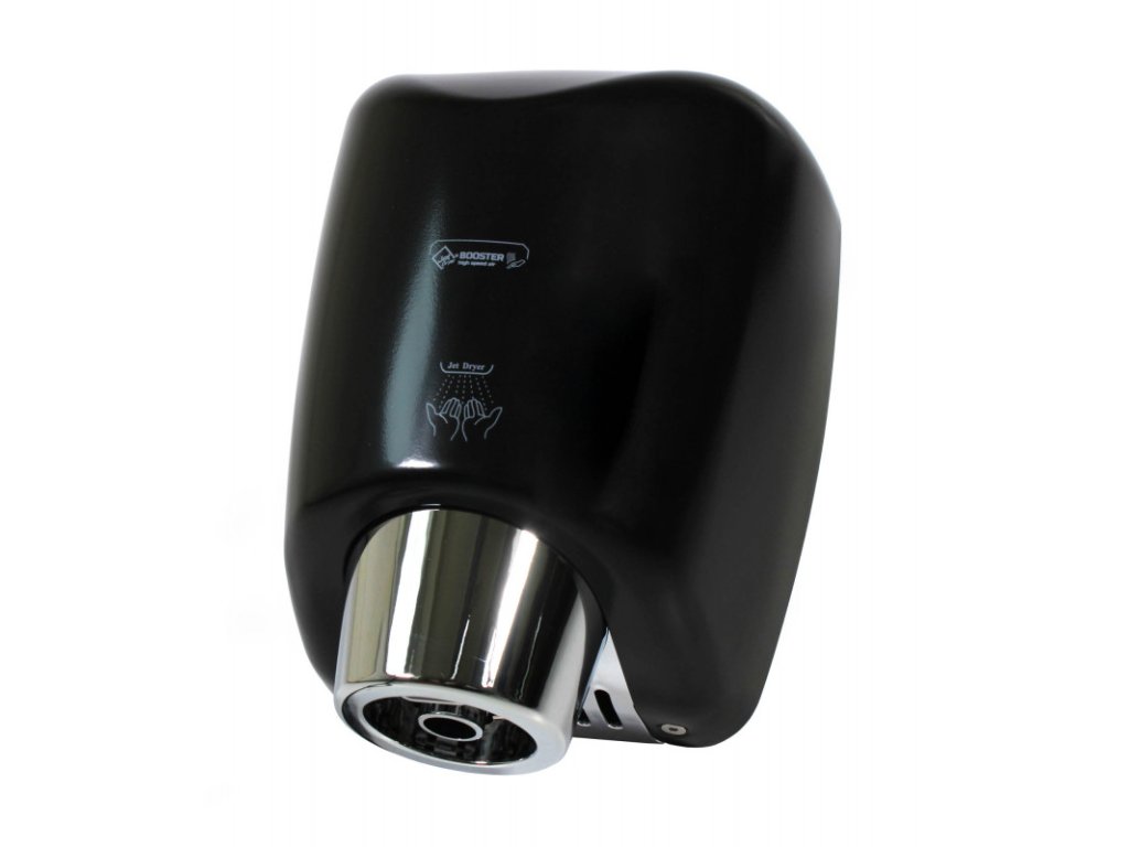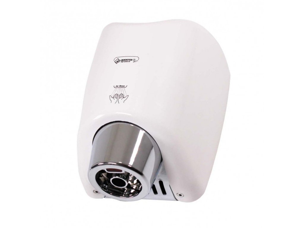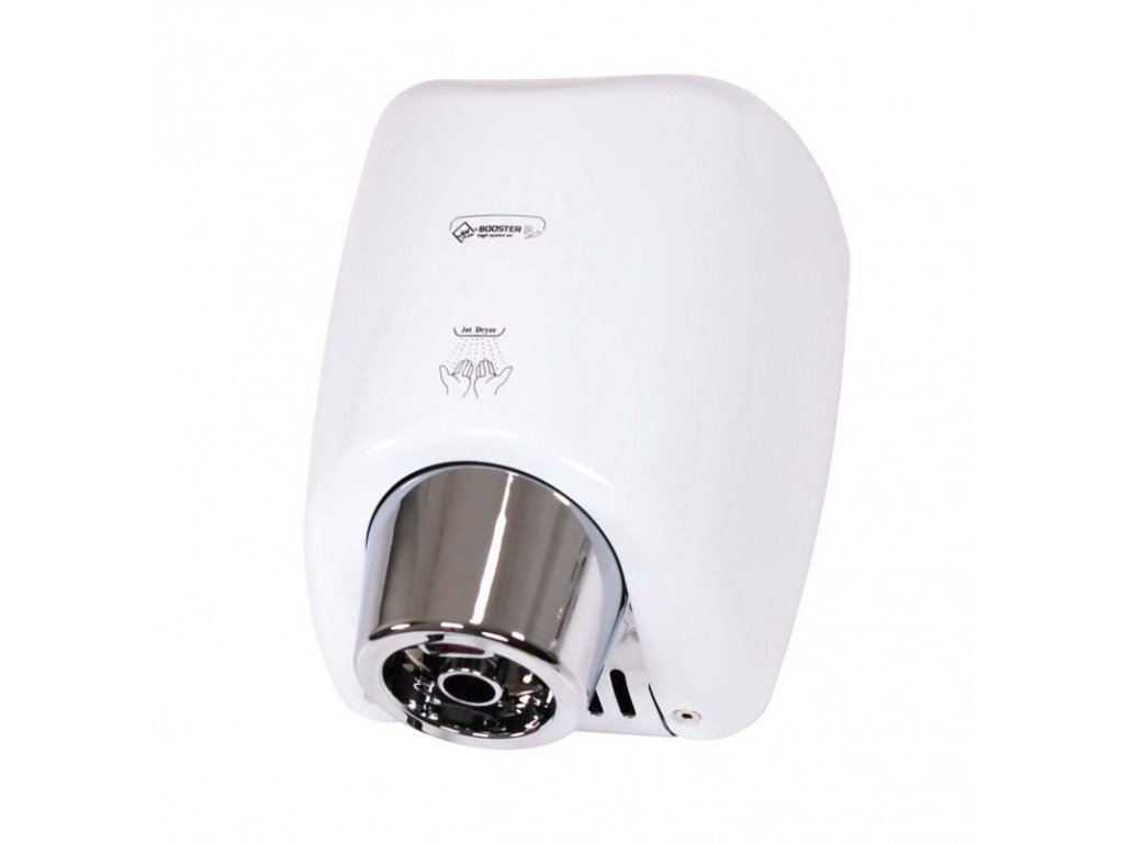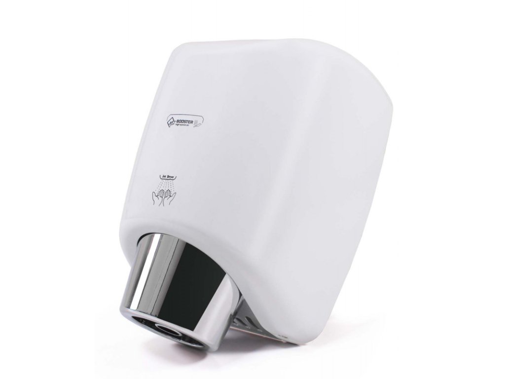 Osoušeč rukou BOOSTER se od jiných osoušečů vyznačuje výraznou pochromovanou tryskou kruhového tvaru. Díky silnému 550 W motoru je vysušení rukou velmi rychlé.