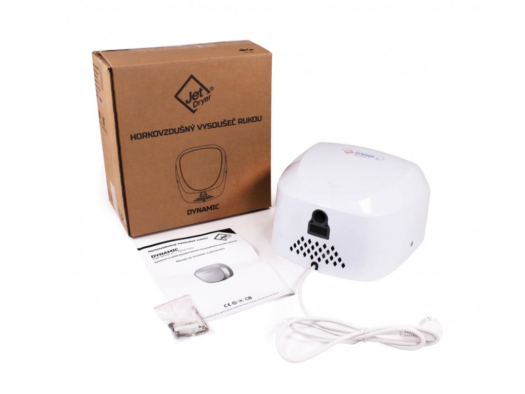 DYNAMIC je jediný osoušeč rukou z řady Jet Dryer vybavený HEPA filtrem. Silně dimenzovaný motor v prostorném kovovém krytu předurčuje tento osoušeč do provozů s velmi frekventovaným provozem. Ohřev vzduchu se spíná automaticky dle okolní teploty.