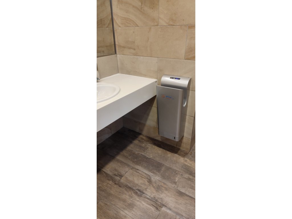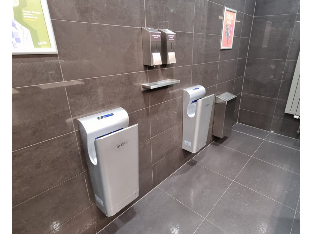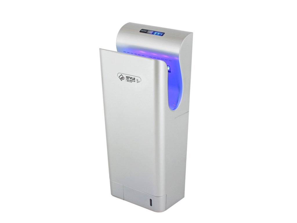 Hygienický elektrický tryskový vysoušeč rukou Jet Dryer Style, patří na každou toaletu, do nemocnice, farmaceutických zařízení, veřejných budov a areálů, škol a stravovacích zařízení na každou provozovnu či firmu, která se maximálně stará o své zákazníky a zaměstnance. Jet Dryer Style je ergonomicky tvarován a zpracován do posledního detailu. Už žádná mokrá podlaha, žádné papírové ručníky povalující se mimo odpadkový koš. Odkapávající voda nekončí na podlaze, jako u jiných vysoušečů, ale je zachycována v odkapávací nádobce ve spodní části přístroje, do které lze přilít trochu desinfekčního přípravku pro neutralizaci vody okapané z rukou.